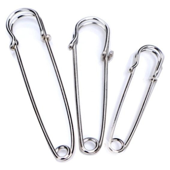 دبابيس الأمان الشنغل، وتُستخدم بشكل شائع لتثبيت الملابس أو الأقمشة أو البطانيات معًا بشكل آمن. الدبابيس في الصورة مصنوعة من الفولاذ المقاوم للصدأ أو معدن مطلي بالنيكل ومصممة لتكون شديدة التحمل ومتينة.