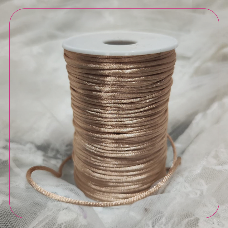 خيط ناعم ولامع، مصنوع عادة من البوليستر أو النايلون، ويُستخدم على نطاق واسع في صناعة المجوهرات والحرف اليدوية. يتميز بملمسه الناعم وبريقه الساتاني، وهو قوي ومتين ويقاوم التآكل، ويمكن استخدامه في مشاريع متنوعة مثل الضفائر والعُقد الصينية، وصناعة الأساور والقلائد.